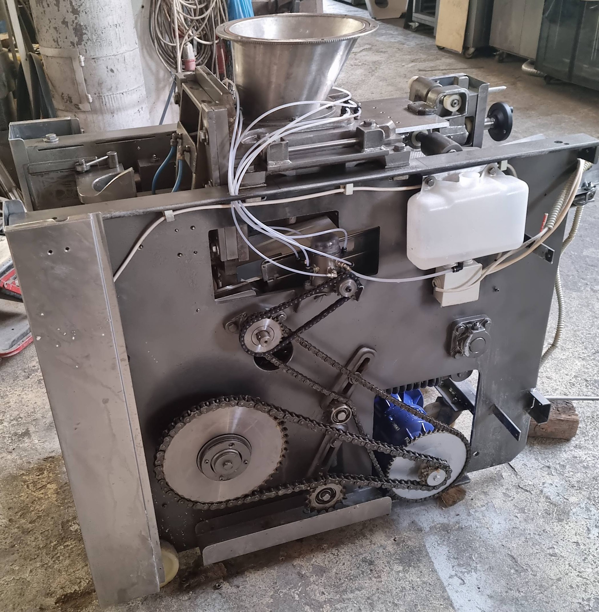 ⭕️ Ανοξείδωτη χοάνη τροφοδοσίας 200kg δίνοντας την δυνατότητα να δουλέψει και με ανατρεπομενο ταχυζυμωτηριο.